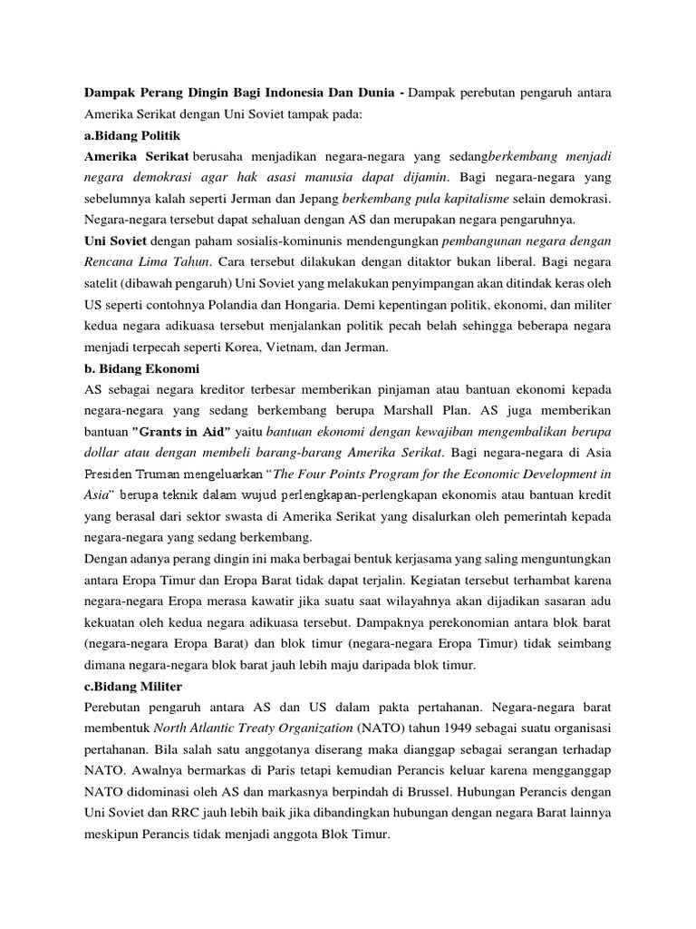 Atas 1: Apa pengaruh Perang Dingin terhadap politik dan ekonomi di ....Top 1: Dampak Perang Dingin di Indonesia - Smart Class